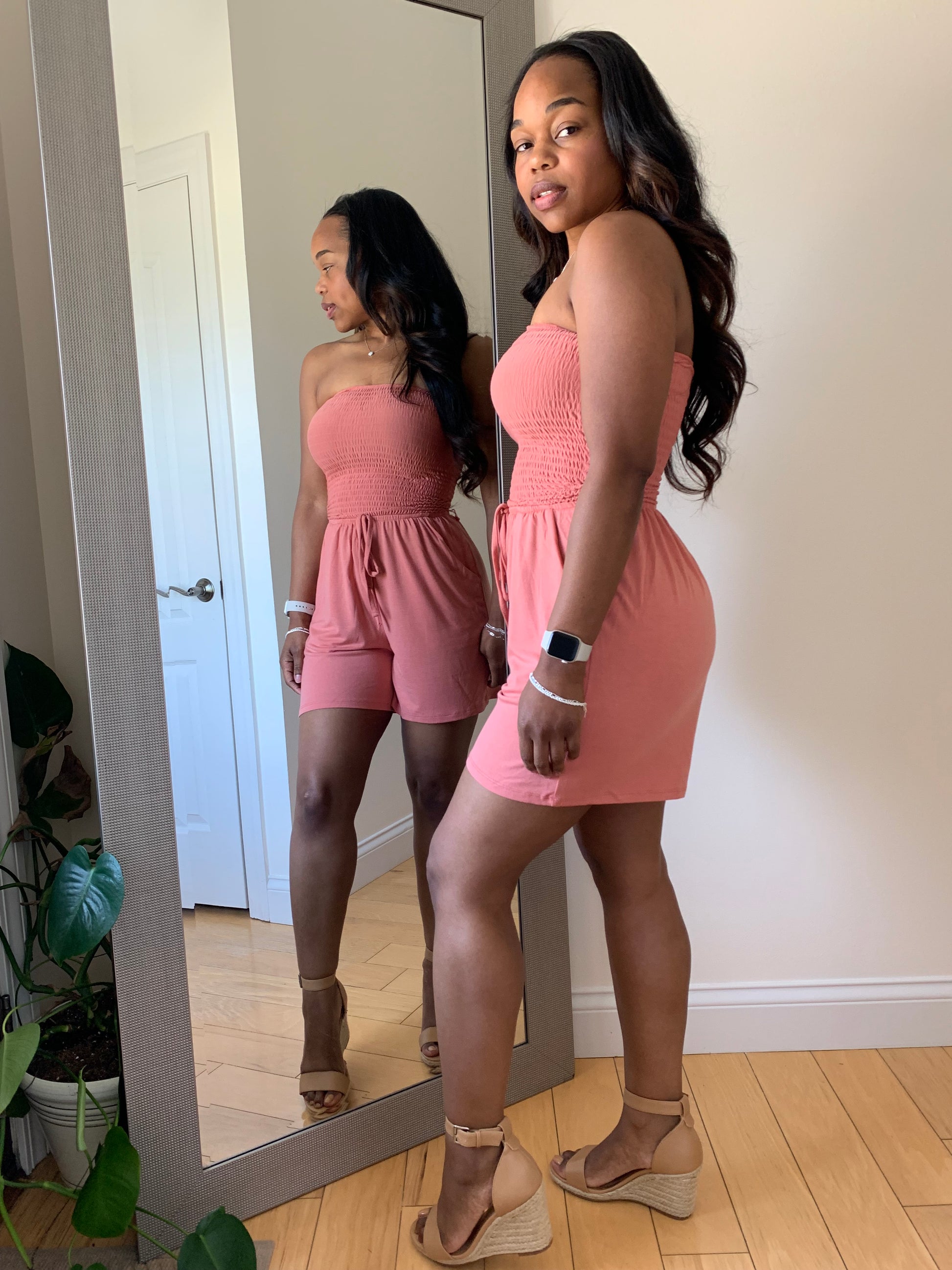 Step into relaxed confidence with the Effortless Days Romper. Designed with a stretch smocked bodice and soft silhouette, this one-piece look flatters every figure while delivering ultimate ease. Finished with side pockets for function and flow, it’s the perfect piece for sunny strolls, casual brunches, or lounging in style.