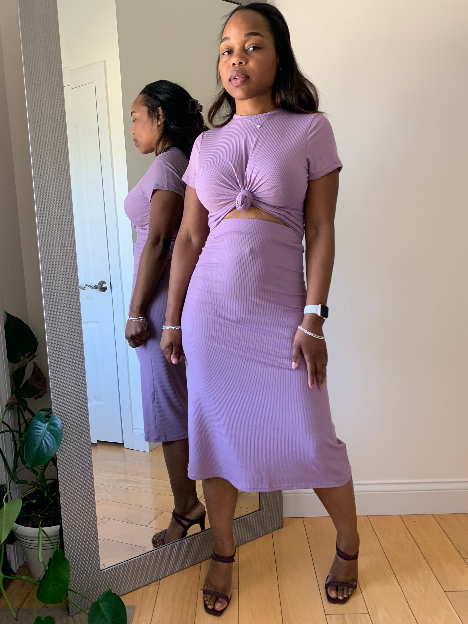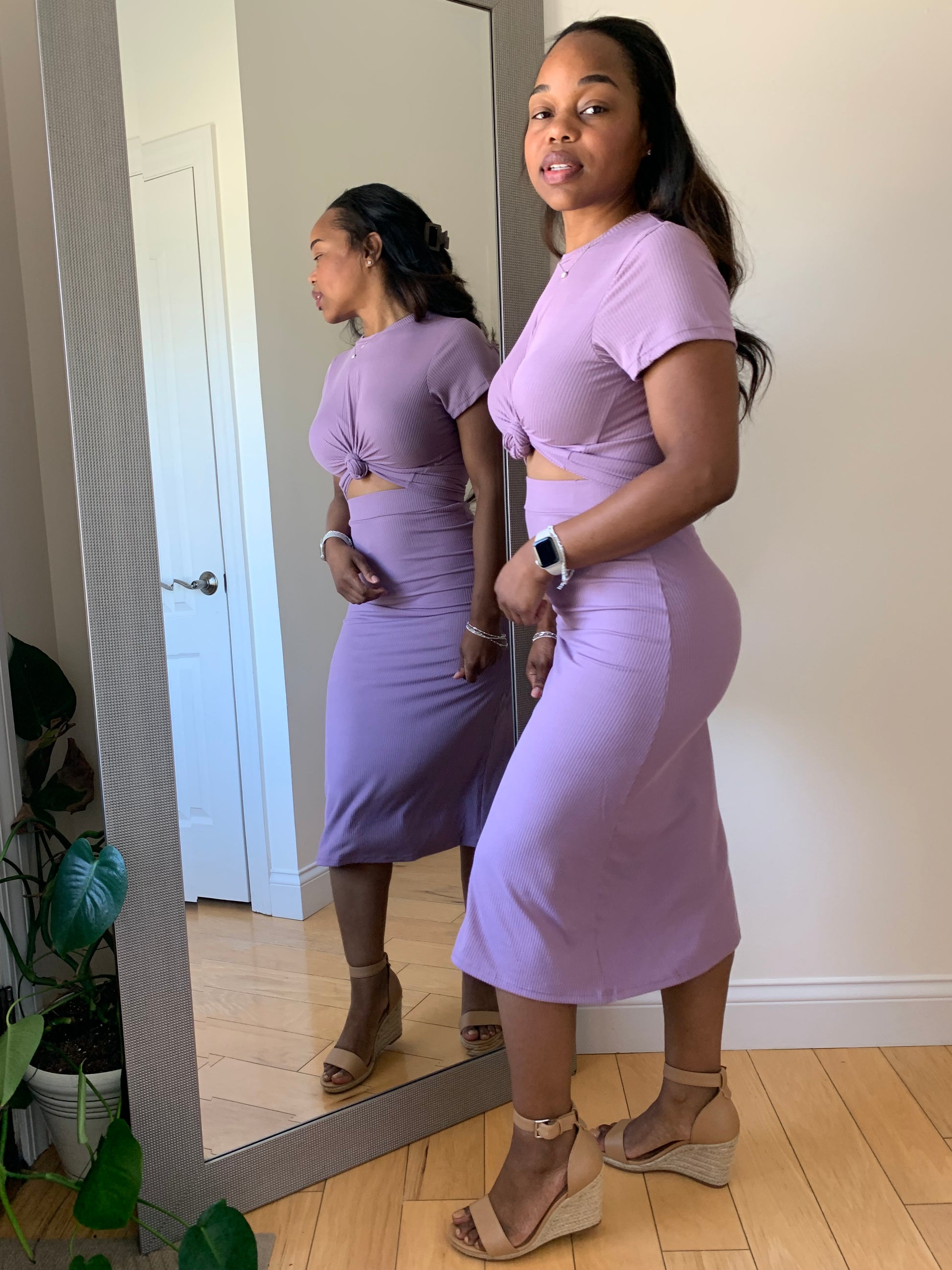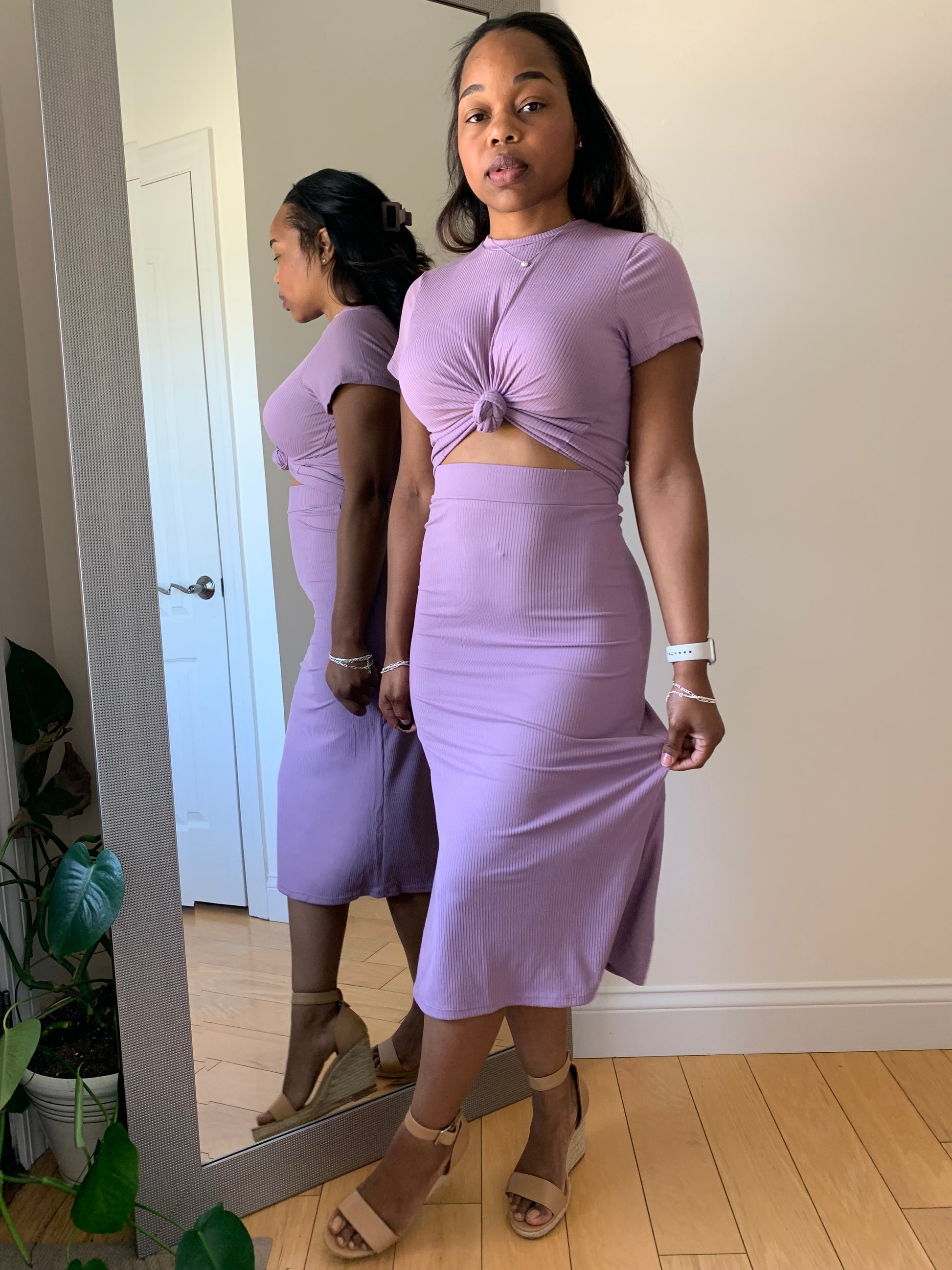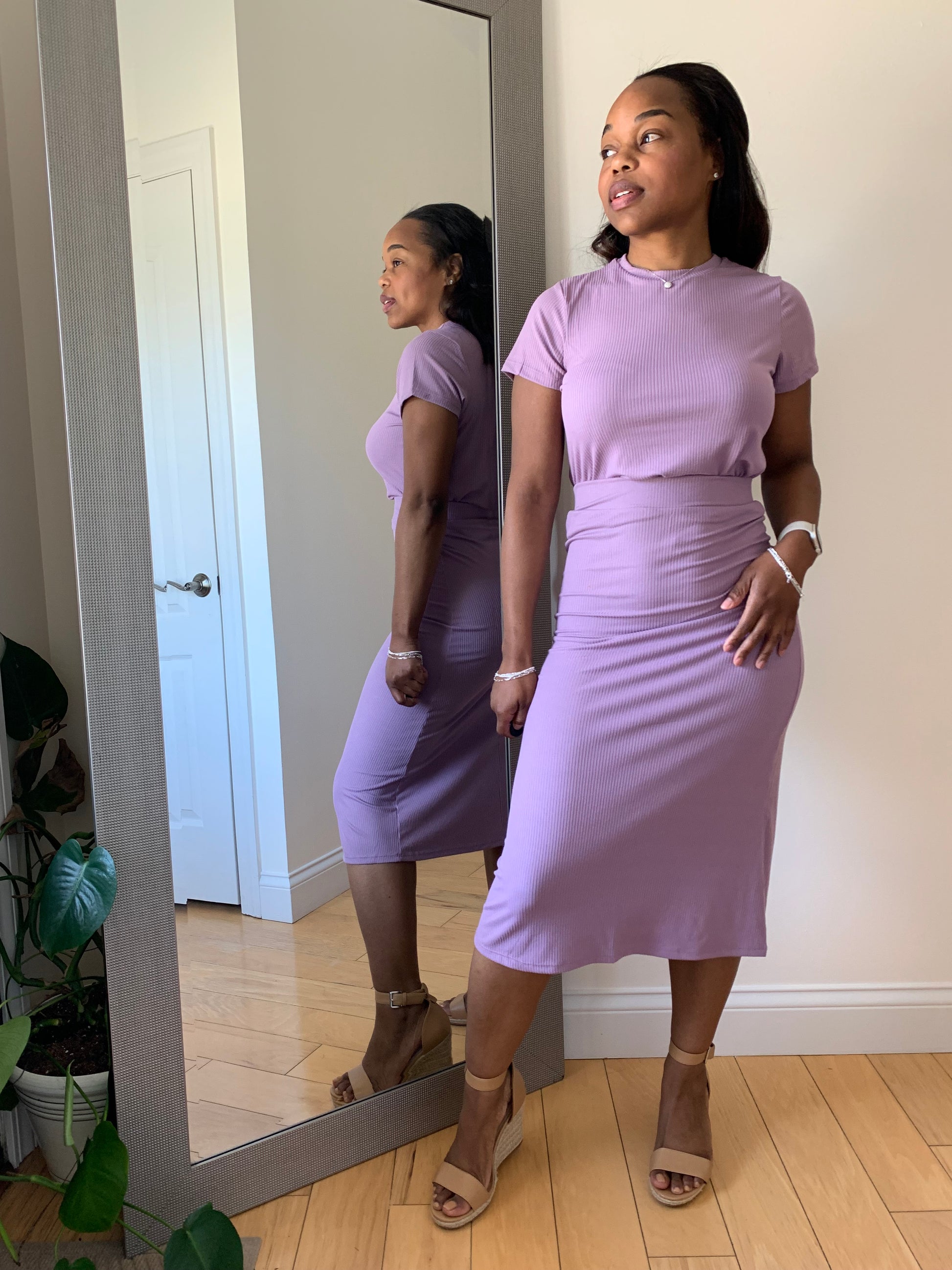 Redefine your everyday look with the First Lady Set! This matching short sleeve ribbed top and midi skirt delivers understated sophistication with a body-hugging fit and clean lines. Designed in a soft, high-stretch rib knit, this set offers both comfort and confidence in one versatile silhouette. Whether styled up or down, it’s a ready-made outfit you’ll reach for again and again. Can be paired with heels for brunch, sneakers for an effortless casual look or sandals for church.