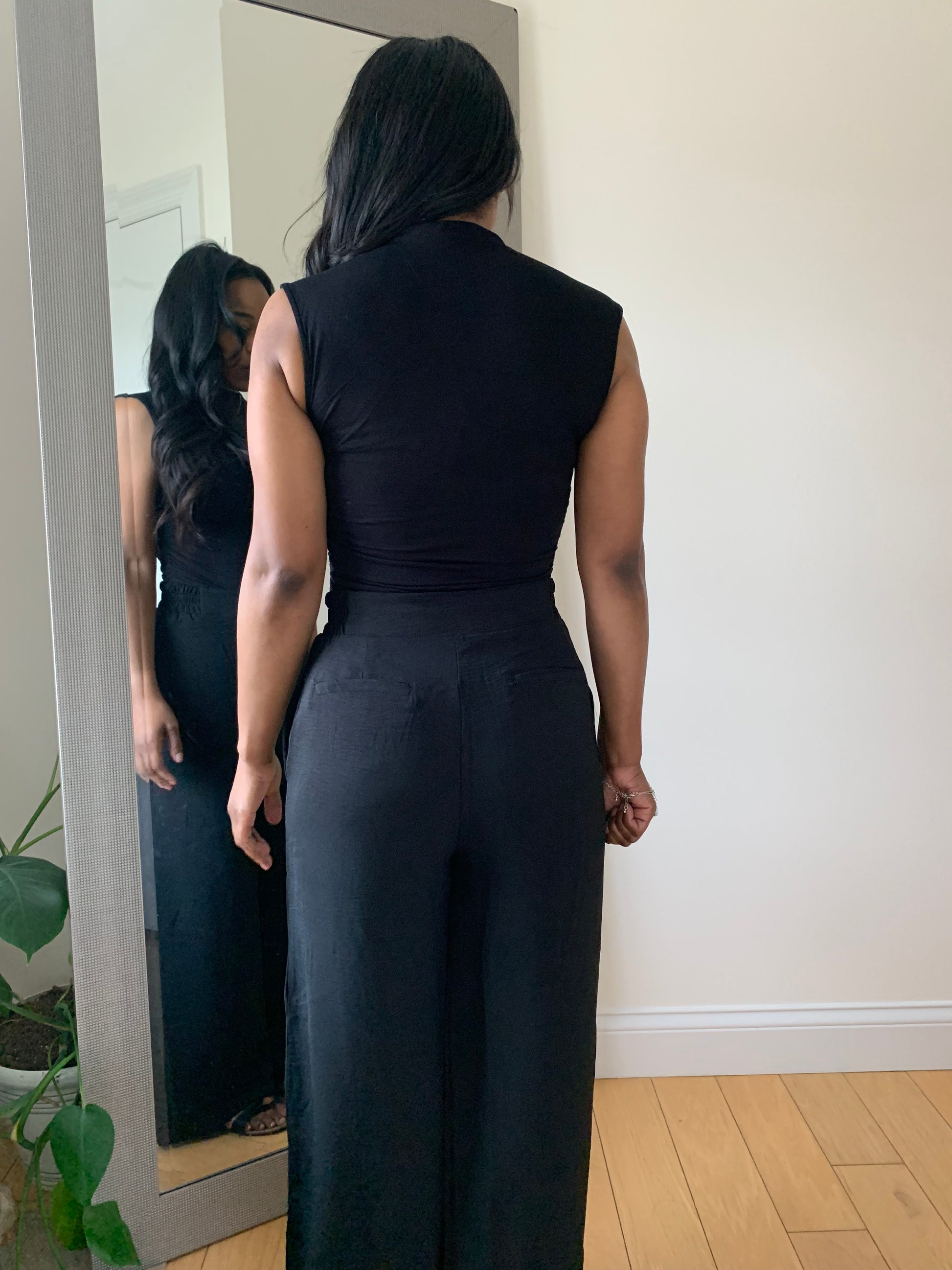 Classic and commanding—the Power Flow Pants in Black are the definition of timeless style. Their sleek silhouette elongates the leg, making them a favorite for dressing up or keeping it chic and minimal for an elevated casual look.